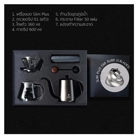 โดยชุดเชต Drip Coffee (ชุดดริปกาแฟ Slim Plus) ในหนึ่งชุดประกอบด้วย